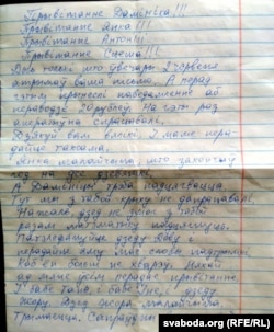 «Цяпер ня ведаем, што адбываецца ў Беларусі і сьвеце», — наракае ён у допісе старэйшай дачцэ Галіне. У наступным лісьце дадае, што апынуўся «ў поўнай інфармацыйнай ізаляцыі».