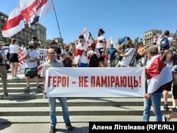 Цягам усяго маршруту калёна скандавала «Жыве Беларусь!», «Слава Украіне», «Героям слава!», «Героі не паміраюць».