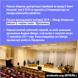 На розных пасадах у Генпракуратуры Андрэй Швед заставаўся ў гэтай сфэры шэсьць гадоў, спэцыялізаваўся таксама на барацьбе з карупцыяй.