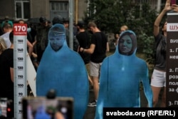 Удзельнікі акцыі заклікалі сьледчых шукаць сапраўдных забойцаў журналістаў, а не «прызначаць на іх ролю невінаватых людзей».