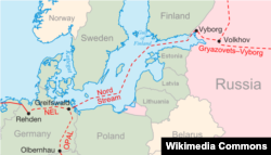 - Першы трубаправод (Nord Stream) зь дзьвюма ніткамі быў цалкам здадзены ў эксплюатацыю ў 2012 годзе. Яго марскі адрэзак склаў 1224 кілямэтры, што робіць яго найдаўжэйшым марскім газаправодам у сьвеце. У год ён здольны перасылаць з расейскага Выбаргу ў нямецкі Грайфсвальд 55 мільярдаў кубамэтраў газу.