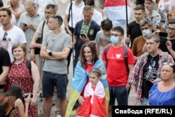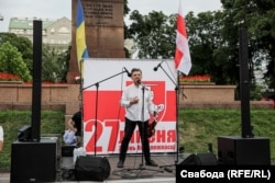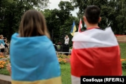 «Сёньня беларусы маюць магчымасьць адзначыць ва ўкраінскай сталіцы, на сымбалічным месцы, сваё сьвята, якое Лукашэнка незаконна скасаваў, але беларуская апазыцыя адзначала яго, нягледзячы на рэпрэсіі», — сказала сустаршыня Руху салідарнасьці «Разам» Алена Талстая.