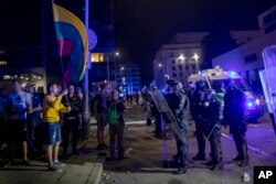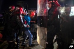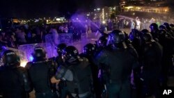 Па 23-й гадзіне паліцыя пачала выцясьняць пратэстоўцаў. У адказ паляцелі камяні і бутэлькі. Паліцыя ўжыла сьлезацечны газ. Відавочцы чулі два выбухі, але прадстаўнік паліцыі заявіў, што яны не выкарыстоўвалі гранат.