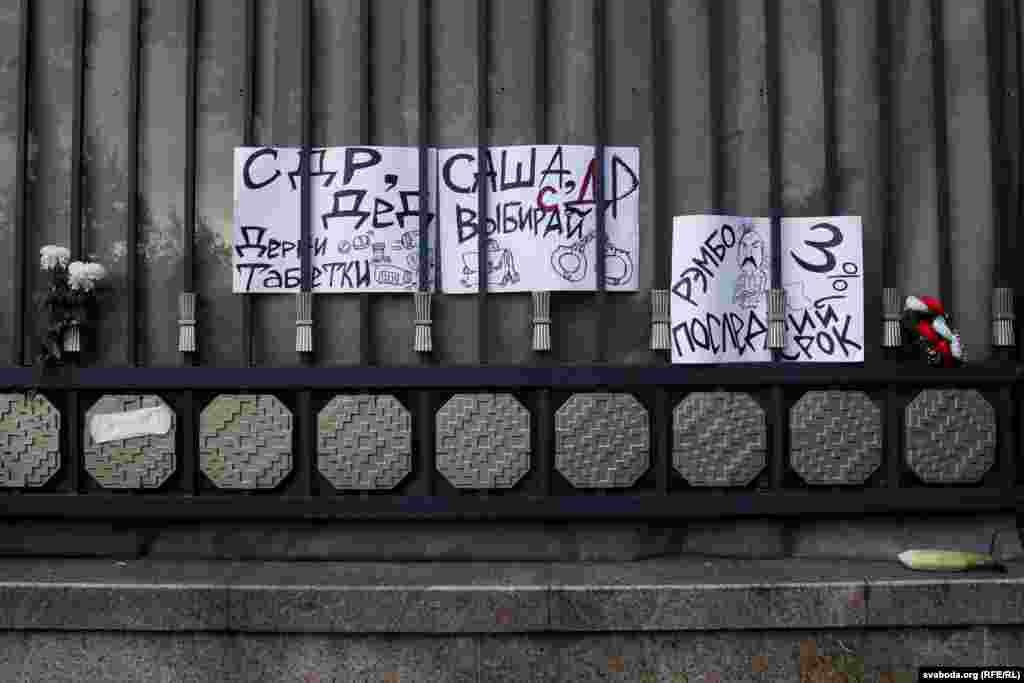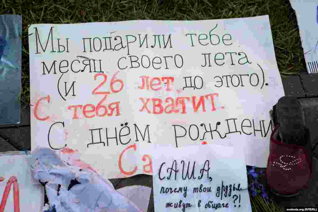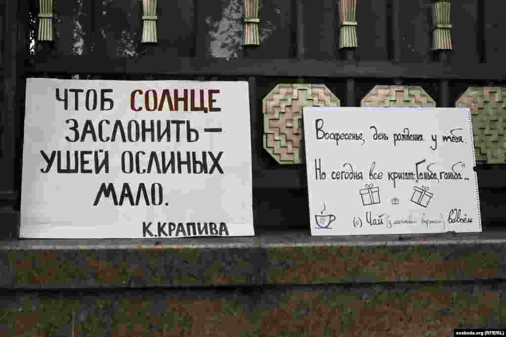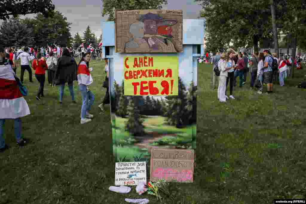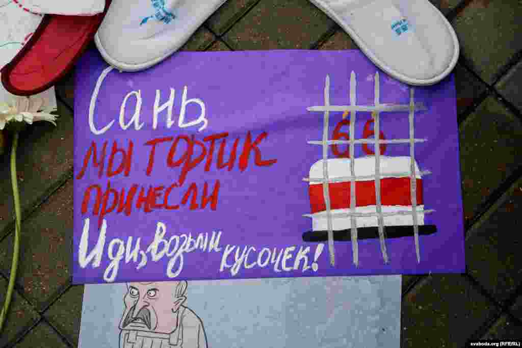 Сёньня, паводле афіцыйнага сайту president.gov.by, Аляксандру Лукашэнку спаўняецца 67 гадоў, зь іх ён ужо 27 гадоў пры ўладзе. Год таму ў гэты дзень у Менску адбыўся шматтысячны «Марш міру і салідарнасьці». Паказваем вам, зь якімі «падарункамі» прыйшлі людзі да Палацу Незалежнасьці.