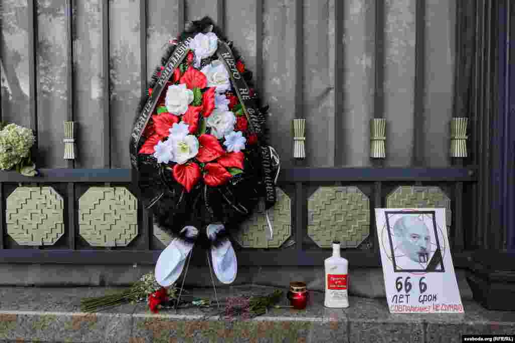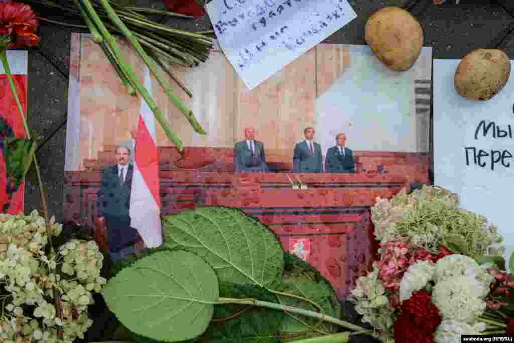 Труны, вянкі, тэпці. Як год таму беларусы павіншавалі Лукашэнку з днём нараджэньня. ФОТА