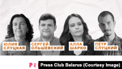 Генэральная пракуратура спыніла крымінальную справу супраць каманды беларускага «Прэс-клюбу»: Юліі Слуцкай, Пятра Слуцкага, Сяргея Альшэўскага і Алы Шарко.