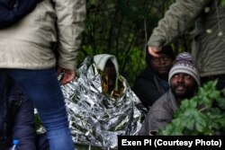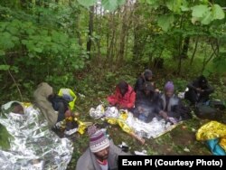 EXEN PL апублікаваў фатаздымкі зь лесу каля мясцовасьці Ласосьна Велька. Гэта 6,5 кілямэтра ад беларускай мяжы, таму надзвычайнае становішча на гэтай тэрыторыі ўжо ня дзейнічае. Мужчыны спалі ў лесе на зямлі, да іх выклікалі хуткую дапамогу. Дзьве асобы былі ў кепскім стане.