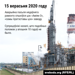 15 верасьня 2020 году аварыйна пасьля нядаўняга рамонту спыніўся цэх «Аміяк-3», «самы пратэставы цэх» заводу. Калі бы ягоную працу хутка не аднавілі, мусіла б паступова спыніцца ўсё прадпрыемства. Цягам году ён і іншыя цэхі нечакана спыняліся яшчэ некалькі разоў у выніку няштатных сытуацый.