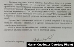 Прадпрыемства праз складаную эпідэміялягічную сытуацыю перайшло ў рэжым жорсткай эканоміі расходу кіслароду для тэхнічных мэтаў, гаворыцца ў лісьце за подпісам генэральнага дырэктара Васіля Касьцюкевіча.