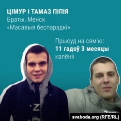 Хлопцы — футбольныя фанаты, антыфашысты, аднаму 27 гадоў, другому 31. Тамаз мае малое дзіця. Іх затрымалі летась у верасьні з розьніцай у адзін дзень. Абвінавацілі ў «масавых беспарадках» у Менску 10 жніўня і 23 верасьня, пасьля тайнай інаўгурацыі Лукашэнкі нібыта яны перакрывалі рух на дарозе. Цімура таксама прызналі вінаватым, быццам ён пашкодзіў машыну «ціхароў», і ва ўхіленьні ад адбываньня папярэдняга пакараньня.