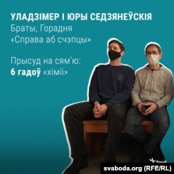 Уладзімеру 37 гадоў, Юрыю — 39. Працавалі інжынэрамі. У аднаго трое, у другога двое малых дзяцей. Мужчын абвінавацілі ў «справе аб счэпцы». Нібыта падчас маршу пратэсту 6 верасьня ў Горадні яны ўчынілі гвалт над 11 амапаўцамі, бо сталі ў счэпку і «выціскалі сваімі целамі» невядомых у чорным са свайго шляху. Абодва атрымалі па 3 гады «хіміі». Уладзя накіравалі ў Віцебск, Юрыя — у Гомель. Яны аднолькава далёка цяпер і ад сваіх сем’яў, і адзін ад аднаго.