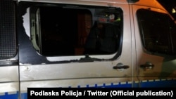 У дзьвюх службовых машынах разьбілі шыбы. Службоўцы не пацярпелі. Трапіць у Польшчу мігрантам не ўдалося, паведаміла польская паліцыя.