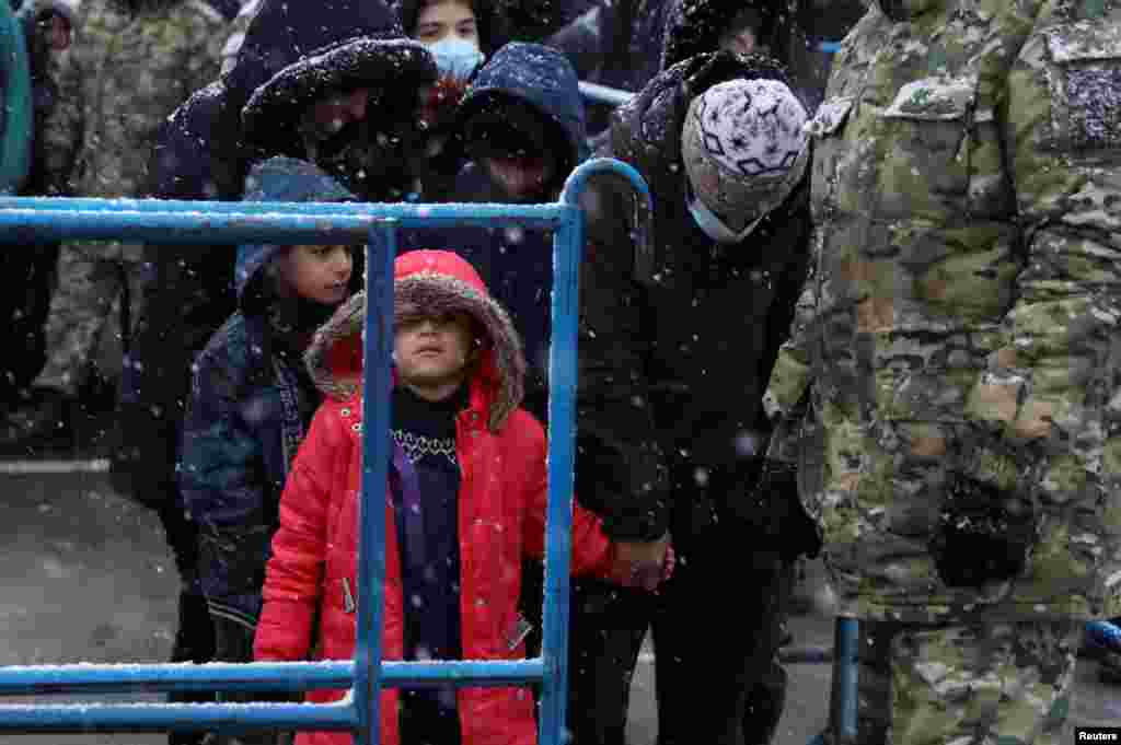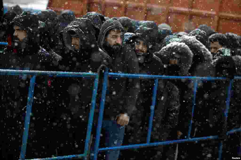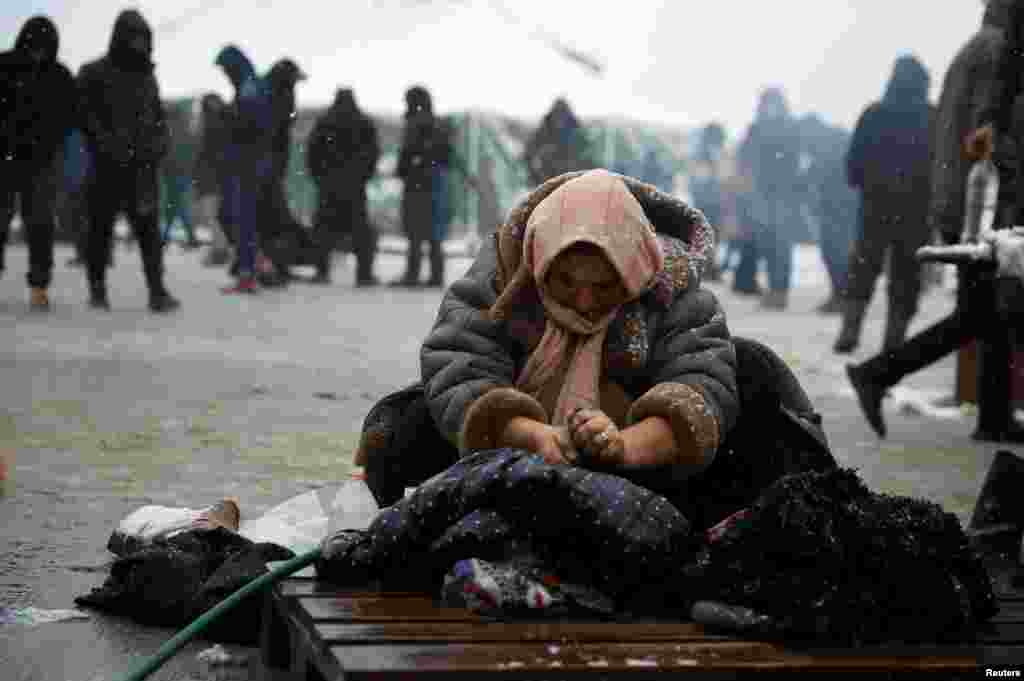 Мігранты, якія знаходзяцца каля лягістычнага цэнтру ў Горадзенскай вобласьці на беларуска-польскай мяжы, трапілі пад першы сьнег гэтай восені ў Беларусі.