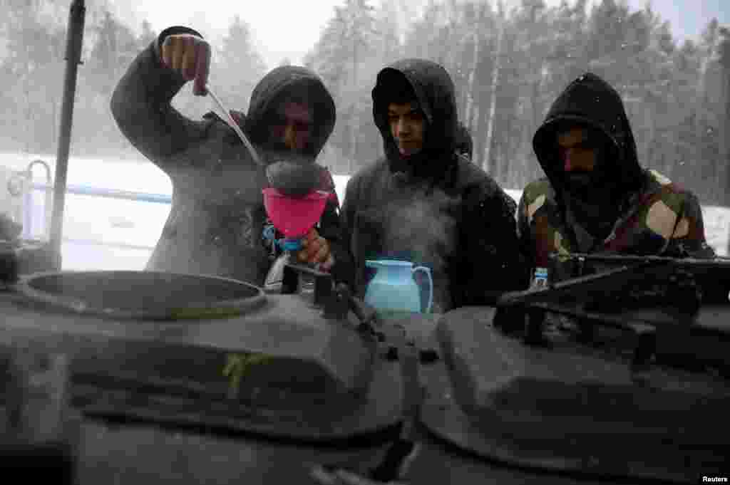 Мігранты на беларуска-польскай мяжы. Выпаў першы сьнег. Фотагалерэя