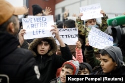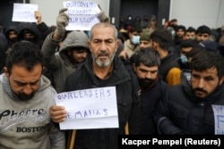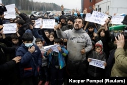 Мігранты правялі мітынг ля лягістычнага цэнтру ў «Брузгах». ФОТА