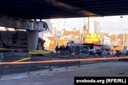 Прэс-служба сталічнай ДАІ паведаміла, што ў сувязі з абвальваньнем моста закрыты рух усіх відаў транспарту: