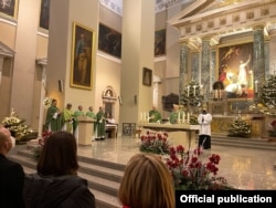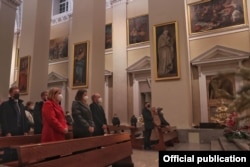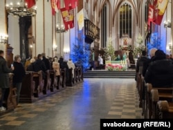 Сьвятую імшу ў Віленскай катэдры правёў біскуп Арунас Панішкайціс. Ва ўрачыстай цырымоніі таксама ўзялі ўдзел прадстаўнікі беларускай грамады Літвы, лідэр беларускай апазыцыі Сьвятлана Ціханоўская і замежныя дыпляматы, якія жывуць у Літве.