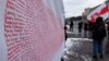 Сьцяг з імёнамі беларускіх палітвязьняў на акцыі ў Кіеве