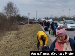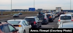 «Быў вялікі корак, аўтобус спыніўся за 25 кілямэтраў ад мяжы. Некаторыя людзі хацелі пакінуць аўтобус і пайсьці пешшу з торбамі, але было ўжо каля 7 гадзіны вечара. Таму мы прынялі рашэньне, што ніхто ня пойдзе, усе застануцца ў аўтобусе, бо мінусавая тэмпэратура і невядома, што можа адбыцца. Па выніку, за 5 гадзін мы праехалі толькі каля 700 мэтраў. Побач з аўтобусам пастаянна ішлі шмат людзей з торбамі, вазкамі, жанчыны зь дзецьмі. Яны грукаліся да нас, прасілі пагрэцца, пераначаваць, але мы некалькі чалавек і так падабралі ў Львове, быў нават праход заняты».
