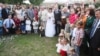Зьіцер і Наста Дашкевічы зь дзецьмі на руках на сьвяткаваньні 93-х угодкаў Васіля Быкава