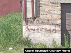 Побач з адным з разбураных будынкаў на сьцяне надпіс: «Мы Освобождаем Украину от Нацызма». У бязграматных «вызваліцеляў» сваё ўяўленьне пра «нацызм», дабро і зло. Можна было б пажартаваць, што ўсе яны жывуць у паралельнай рэчаіснасьці, вось толькі іхняя паралельная рэчаіснасьць штодня забірае жыцьці тут і цяпер, у тых, хто ў труне бачыў увесь гэты «клопат» і «гуманізм».