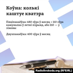 «Мы глядзелі ўвосень цэны яшчэ зь Менску, то за 200–300 эўра было магчыма наняць двухпакаёўку, за 300–400 эўра гэта ўжо была неблагая двухпакаёўка ў цэнтры. Калі ўвесну беларусы, украінцы і расейцы пачалі ехаць у тым ліку ў Коўна, то цэны, безумоўна, падскочылі, я б сказаў, на 50–60%, цяпер зноў крыху ўпалі. Чакаецца, што ў верасьні, калі студэнты вернуцца ў горад, цэны зноў узьляцяць угару».