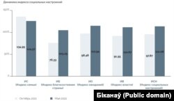 - Індэкс сацыяльных настрояў, які адлюстроўвае вэктар палітычных, эканамічных і грамадзкіх перажываньняў беларусаў.
