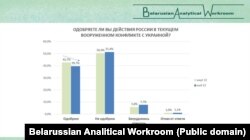 Паводле сакавіцкага апытаньня Беларускай аналітычнай майстэрні толькі 11% выказваліся за ўдзел беларускай арміі ў вайне, цяпер гэтая доля зьнізілася, хаця і нязначна.