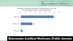 З параўнаньня папярэдніх графікаў наконт апытаньня ва Ўкраіне вынікае, што ня ўсе ўкраінцы, чыё стаўленьне да беларусаў пагоршылася і хто лічыць, што Беларусь — удзельнік канфлікту, сталі ставіцца да паўночных суседзяў горш.