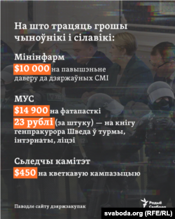 Мінінфарм хоча палепшыць дзяржаўныя СМІ за $10 000, а МУС набывае кнігу генпракурора Шведа. На што трацяць грошы ўлады