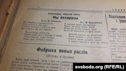 Незвычайную памылку друку я заўважыў у адным з нумароў абласной газэты. Чытачоў знаёмілі зь песьняй „Мы, беларусы“, якая неўзабаве стане гімнам БССР. Апошні куплет быў надрукаваны вось у такім выглядзе: