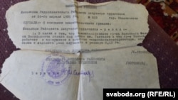 Далікатная, каротка падстрыжаная, хударлявая, можна нават сказаць вытанчаная, пані Аліна паказвае мне старыя дакумэнты канца 1940-х. Замест лесу новая ўлада адарыла сям’ю некалькімі соткамі зямлі. Але ж магла і назаўжды вырваць у лягерную невараць бацьку Аліны.