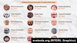 - Павал Разановіч — 16 гадоў калёніі ўзмоцненага рэжыму.
