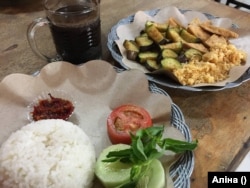 Аліна набывае вялікую порцыю ежы на Яве за $1. Гэта, прыкладам, рыс з касавай — нешта накшталт батату. Любіць тэмпэ і тофу — прадукты з соі.