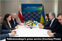 Сьвятлана Ціханоўская таксама правяла сустрэчу з былым прэзыдэнтам Украіны Пятром Парашэнкам, падчас якой ён расказаў пра чаканьні Ўкраіны ад дэмакратычных сілаў.