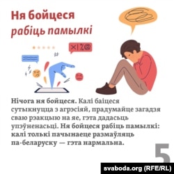 «Паўсюль, дзе вы ходзіце з дзіцём, вы мусіце быць беларускамоўным. Гэта крута. Па-першае, вы ня хлусіце дзіцяці. Па-другое, вы распаўсюджваеце беларускую мову. Ня бойцеся агрэсіі. Яна можа быць, але загадзя прадумайце сваю рэакцыю. У нашым жыцьці такога не здаралася».