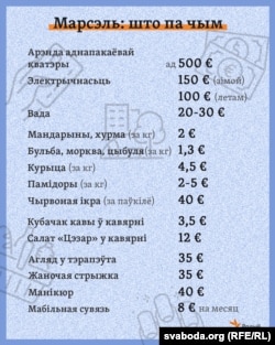 Васіліса расказвае, што, у адрозьненьне ад Менску, дзе цэны ва ўсіх крамах больш-менш аднолькавыя, у Францыі існуе вельмі вялікая разьбежка. Напрыклад, у вядомую сетку Carrefour ніхто ня ходзіць на закупы, хіба што па дарозе ў парку купіць чагосьці смачнага.