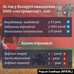 5000 крымінальных спраў за «злачынства экстрэмісцкай скіраванасьці» завялі ў Беларусі ў мінулым годзе. Параўноўваем гэтую лічбу з выпускам у прамысловасьці ды іншымі паказчыкамі.