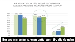 У пытаньні пра стаўленьне да прысутнасьці ў Беларусі расейскіх войскаў у сакавіку выбралі варыянт «Цяжка адказаць» 6,7%, у верасьні — ужо 18,6%.