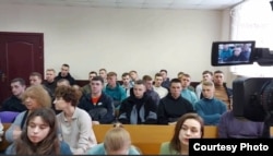 На абвяшчэньне прысуду ў судовую залю прывялі, імаверна, курсантаў Акадэміі МУС, якія занялі амаль усе месцы, піша «Вясна».