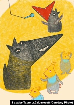 «Ён вымушаны быў стаць героем і бараніць сваё. Ён не знайшоў ніадкуль дапамогі і проста зразумеў, як яму перамагчы гэтую лісу. Я разумела, што не хачу ніякага пеўня з касой [які перамагае лісу ў народнай казцы. — РС], і нават палякі ў тэатры пыталіся: „А там ня будзе касы?“ Бо вайна, якая яшчэ зброя? І вось наш заяц перамог тым, што ён проста дзяўбаў, дзяўбаў і дзяўбаў, лісе гэта надакучыла, і яна сама зьбегла. І вось наш заяц вырастае, становіцца моцным».