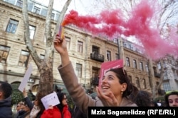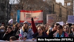 Удзельніцы шэсьця, прысьвечанага Міжнароднаму жаночаму дню, сёлета пратэстуюць супраць законапраекту «Аб празрыстасьці замежнага ўплыву», зацьверджанага напярэдадні парлямэнтам Грузіі ў першым чытаньні.