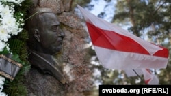 Пасьля абнаўленьня на памятным камяні надпісы дублююцца на беларускай мове.