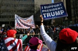 Трамп, які пасьля сыходу з пасады прэзыдэнта жыве ў сваім доме ў Флорыдзе, прыляцеў у Нью-Ёрк у панядзелак.