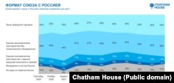 — Нарэшце, стаўленьне да Расеі — да формаў інтэграцыі зь ёю, якім аддаецца перавага. Чаму падтрымка Расеі ў вайне ладнай часткай апытаных не ператварылася ў іх падтрымку больш шчыльнай інтэграцыі з Расеяй?