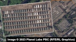 Камэнтуючы новыя спадарожнікавыя здымкі на просьбу Свабоды, украінскі вайсковы экспэрт Алег Жданаў пацьвярджае, што на тэрыторыі былой вайсковай часткі разьмешчаныя сучасныя палявыя намёты ўзброеных сіл Беларусі, кожны зь якіх можа зьмясьціць «мінімум 50 чалавек».