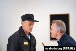Алег Грузьдзіловіч і Анатоль Лябедзька дэманструюць паводзіны палітвязьня і турэмшчыка