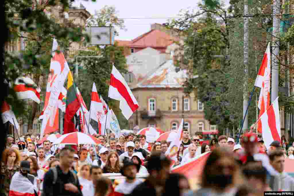 На акцыю салідарнасьці беларусаў на Катэдральным пляцы Вільні прыйшлі некалькі сотняў чалавек. На мітынгу выступіла лідэрка дэмакратычных сілаў, грамадзкія актывісты і музыкі. Шэсьце скончылася каля амбасады Беларусі.