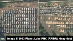 - Паводле інфармацыі The Washington Post, ад 22 ліпеня на базу таксама прыбылі «дзясяткі, калі ня сотні» адзінак баявой тэхнікі. Паводле зьвестак Дзяржаўнай памежнай службы Ўкраіны, на 22 ліпеня колькасьць расейскіх наймітаў ПВК «Вагнэр» у Беларусі магла дасягаць 5 тысяч.