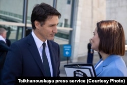 На сустрэчы з прэмʼер-міністрам Канады Джастынам Трудо Ціханоўская падзякавала Канадзе за падтрымку дэмакратычных сілаў.